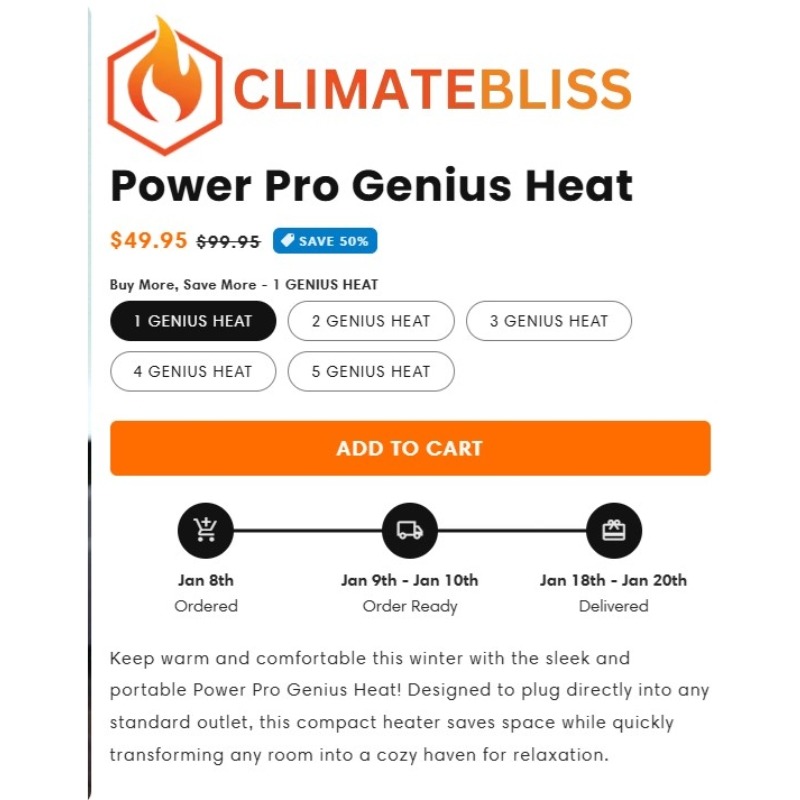 The ClimateBliss Portable Heater is competitively priced, making it an attractive option for budget-conscious consumers looking for an effective heating solution. The standard price of the ClimateBliss is $59.99, which includes advanced features and technology designed to enhance your heating experience.
