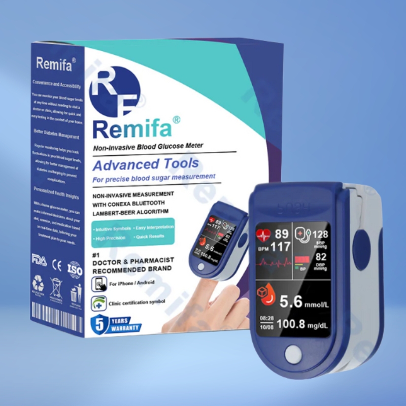 Experience hassle-free glucose monitoring with the Remifa Non-Invasive Blood Glucose Meter. This innovative device offers accurate, pain-free readings without the need for finger pricks, making it ideal for those who require frequent monitoring. Certified by MHRA, FDA, and CE, it ensures reliability and real-time tracking of your health. Lightweight and easy to use, the Remifa meter is perfect for home or travel. Say goodbye to discomfort and embrace a smarter way to manage your diabetes. Choose Remifa for convenience, precision, and peace of mind in every reading!