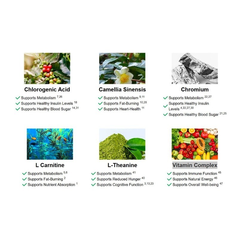 Key ingredients include Chlorogenic Acid, Camellia Sinensis, Chromium, L-Carnitine, L-Theanine, and a comprehensive Vitamin Complex. - Does Tea Burn have any side effects?
