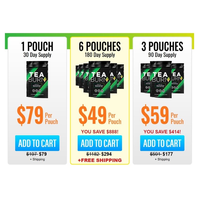 Tea Burn is available in several pricing options to accommodate different user needs. Here’s a breakdown of the current pricing for each package: